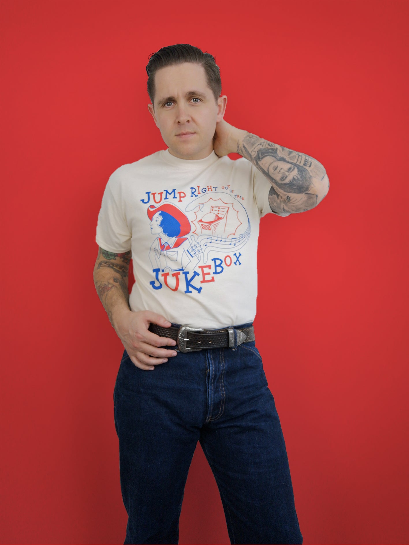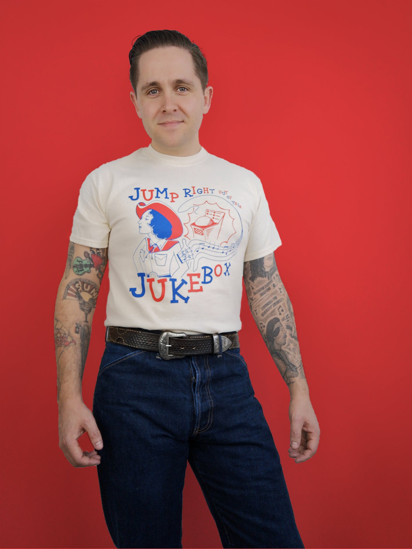 Don’t touch that dial! We have cooked up a mix that will blow your socks off! Complete with dancing cowgirl and living, moving music notes, our jumping jukebox design is screen printed onto 100% natural cotton, to give it that authentic 50’s look and feel.